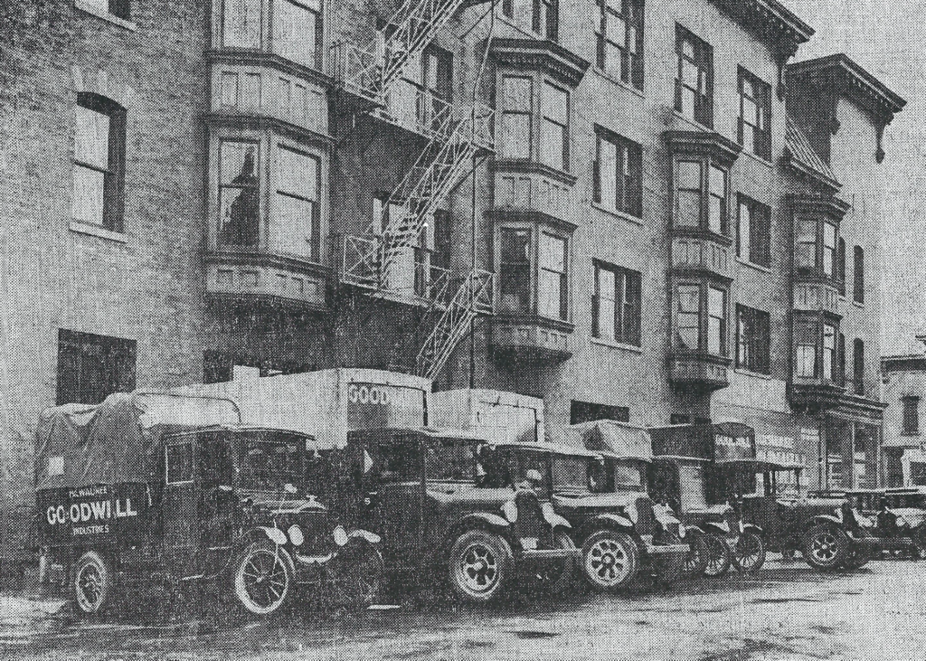 Originally the building featured three commercial storefronts on its first floor and eight apartments on the upper two floors. Since the building opened it housed a meat market, a tavern, a St. Vincent de Paul Society branch, a tailor shop, and an electric sign company.